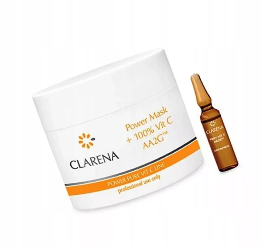 Clarena Power Cream +100% Vit C AA2G Maska Rozświetlająca ze 100% Aktywną Witaminą C i Jedwabiem 100ml + 3ml