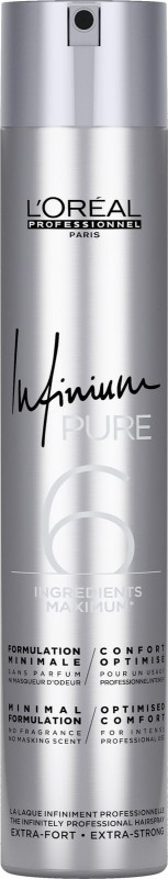 Infinium Pure - Profesjonalny lakier do włosów zapewniający bardzo mocne utrwalenie. Bezzapachowa formuła, która zapewnia komfort stosowania. Idealny do upięć, koków lub wyraźnie wymodelowanych fryzur. Blask i natychmiastowe utrwalenie bez sztywności włosów. Nie pozostawia osadu na włosach.