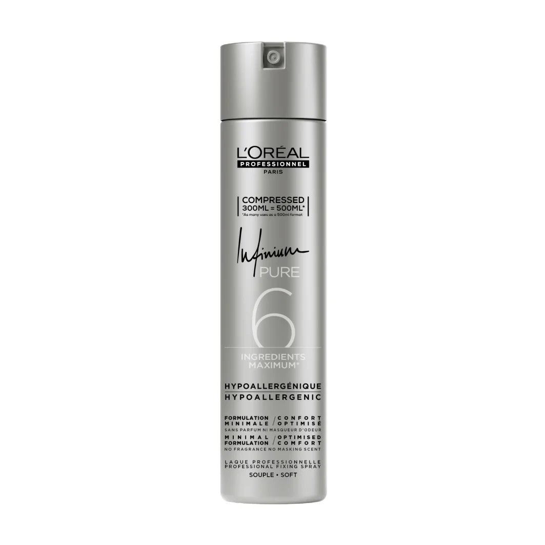 L'Oreal Infinium Pure Soft Force 2 Bezzapachowy Lakier Elastycznie Utrwalający Bez Osadu, Skompresowany, 300ml = 500ml