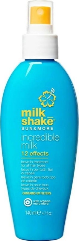 Sun & More Incredible Milk milk_shake to intensywna pielęgnacja bez spłukiwania, która chroni każdy włos przed ewentualnym uszkodzeniem słonecznym. Maska w sprayu, wzbogacona masłem muru muru, proteinami mleka i ekstraktami owocowymi, wspomaga z 12-krotnym efektem:
