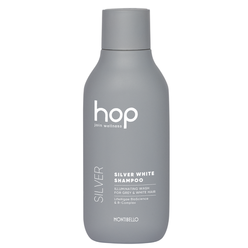 HOP Silver White Shampoo to rozjaśniający szampon do włosów siwych i platynowych. Wzmacnia od wewnątrz, naprawiając pojawiające się uszkodzenia. Eliminuje żółknięcie oraz zapewnia miękkość i podatność na układanie. Linia HOP została zaprojektowana do kompleksowej pielęgnacji włosów. Produkty tej linii zawierają wyciąg z alg morskich uzyskany w procesie hiperfermentacji, która czterokrotnie zwiększyła działanie aktywnych molekuł. Seria Silver została stowrzona z myślą o włosach siwych i platynowych. Bogata formuła z kompleksem witamin z grupy B wzmacnia włókno oraz chroni włosy przed negatywnymi czynnikami środowiskowymi. Eliminuje żółknięcie i wzmacnia naturalny blask.