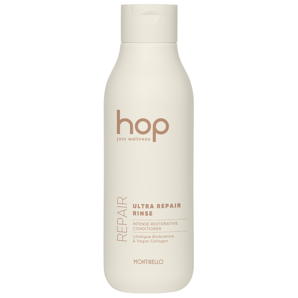 Montibello HOP Ultra Repair Rinse wzbogacona jest o ekstrakt z nasion komosy ryżowej, który intensywnie nawilża, regeneruje i chroni włosy przed uszkodzeniami. Ekstrakt z alg morskich wzmacnia działanie substancji aktywnych, dzięki czemu włosy stają się mocniejsze i bardziej odporne na zniszczenia. Wegański kolagen uzupełnia, wzmacnia i odbudowuje strukturę włosa, zapobiegając jego łamliwości. Dodatkowo, ceramidy dbają o strukturę i włókno włosa, zapewniając im głębokie odżywienie i ochronę.