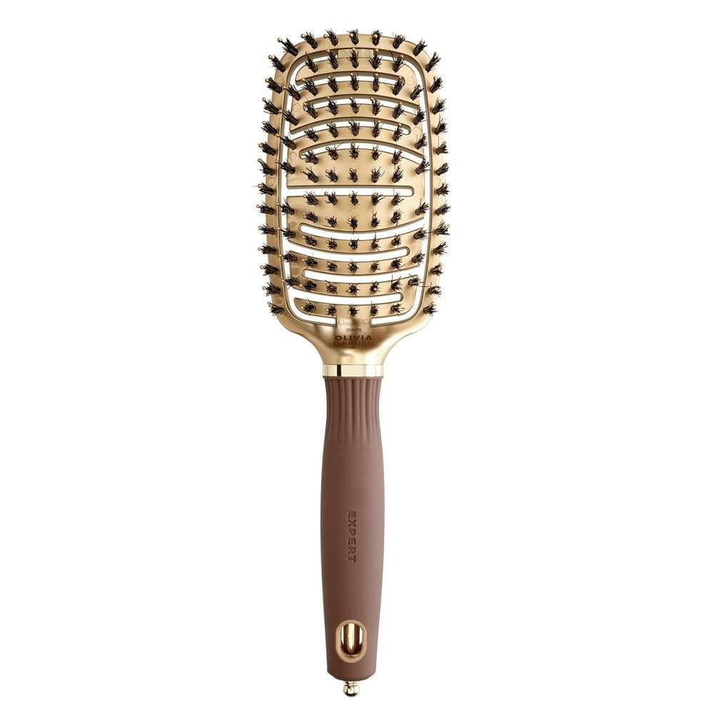 Olivia Garden Expert Care Flex Boar&Nylon Bristles Gold&Brown, Elastyczna, Termiczna Szczotka Ceramiczna z Włosiem Dzika i Jonizacją