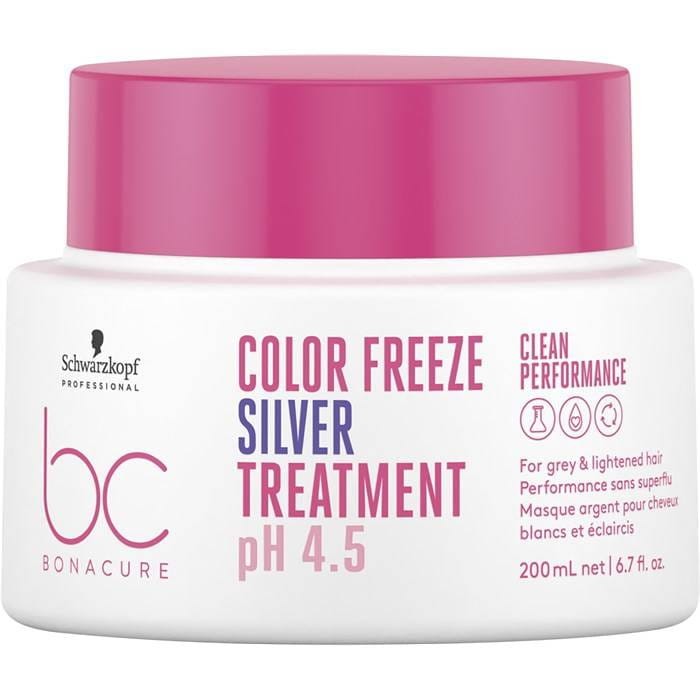 Maska do włosów farbowanych Schwarzkopf BC Color Freeze Silver zapewnia dogłębną pielęgnację i pomaga w neutralizacji niepożądanych ciepłych tonów na włosach. Kosmetyk ochładza kolor włosów i przywraca im optymalne pH. Dzięki temu kolor nie blaknie. Maska nadaje cedrowy blask włosom białym i bardzo jasnym bazom. Pasma odzyskują elastyczność i głębię koloru. Maska zmniejsza do 95% łamliwość włosów.