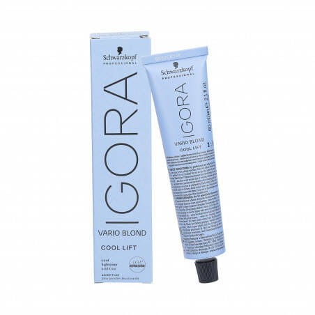Dodatek do rozjaśniacza Schwarzkopf Igora Vario Blond Cool Lift neutralizuje i ochładza odcień włosów po dodaniu do rozjaśniacza w proszku Igora Vario Blond.
