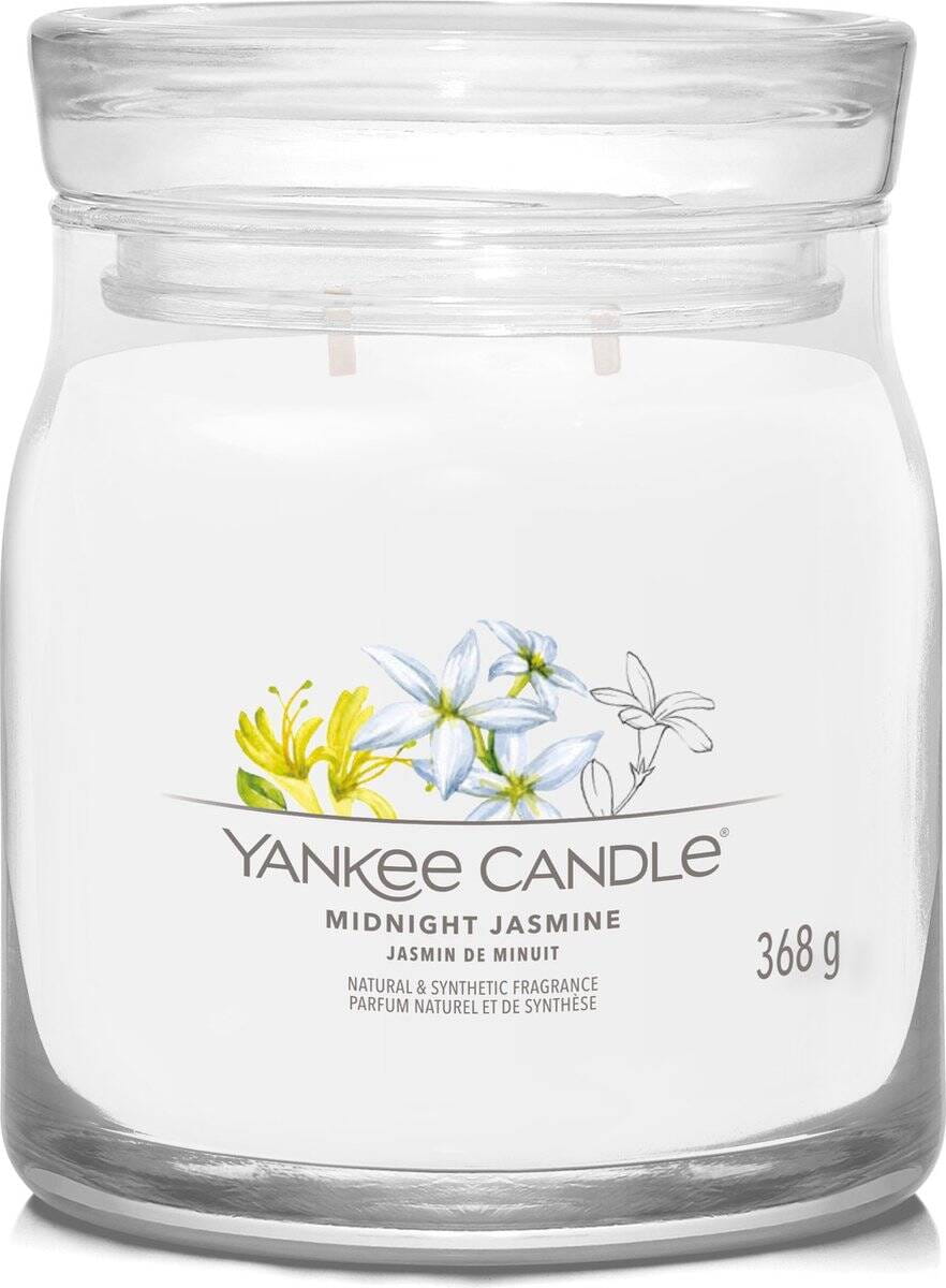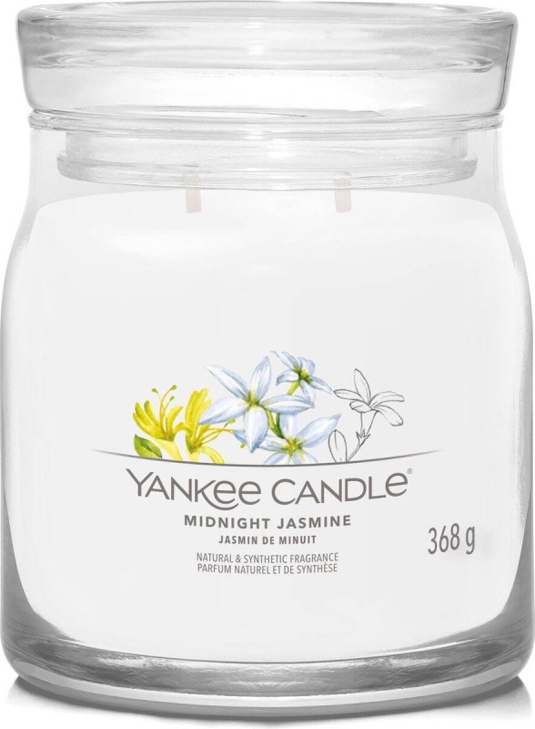 Yankee Candle Signature Medium Jar Floral Midnight Jasmine, Średnia Świeca Sojowa z Dwoma Knotami, 368g