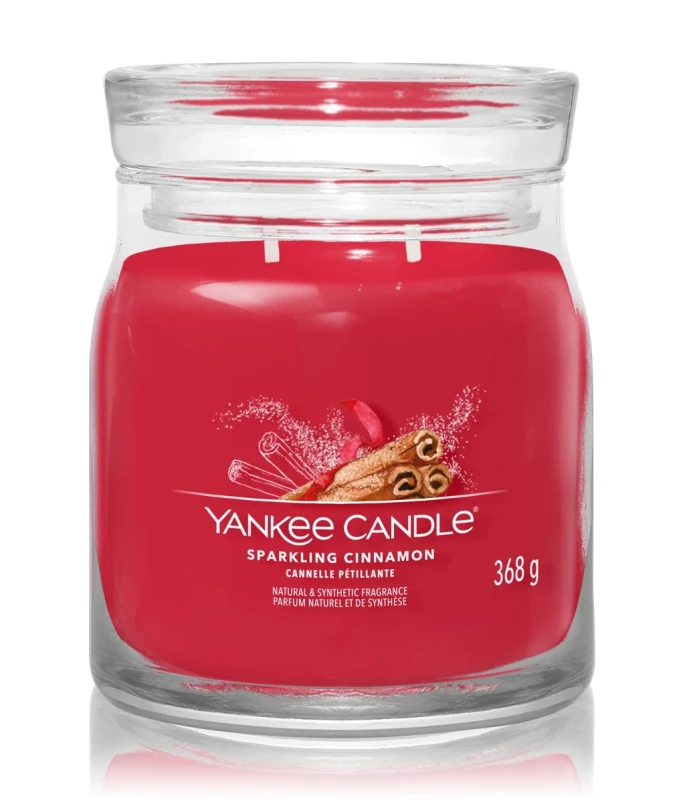 Yankee Candle Signature Sparkling Cinnamon, Średnia Świeca Sojowa z Dwoma Knotami, 368g